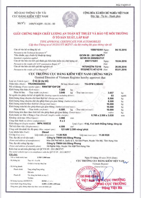 - Tổng Khối Lượng Tham Gia Giao Thông : 16.000 kg