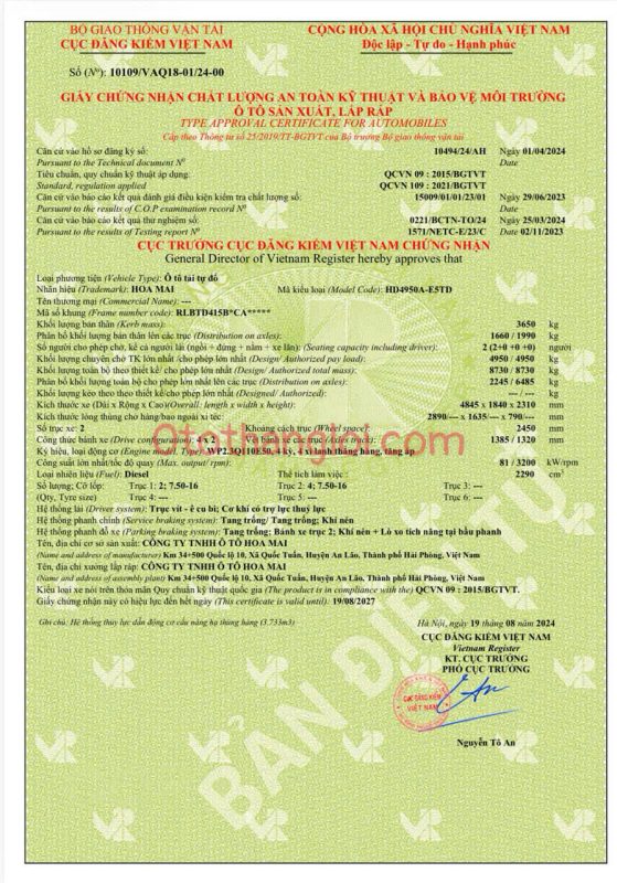 - Tải Trọng : 4.950 kg