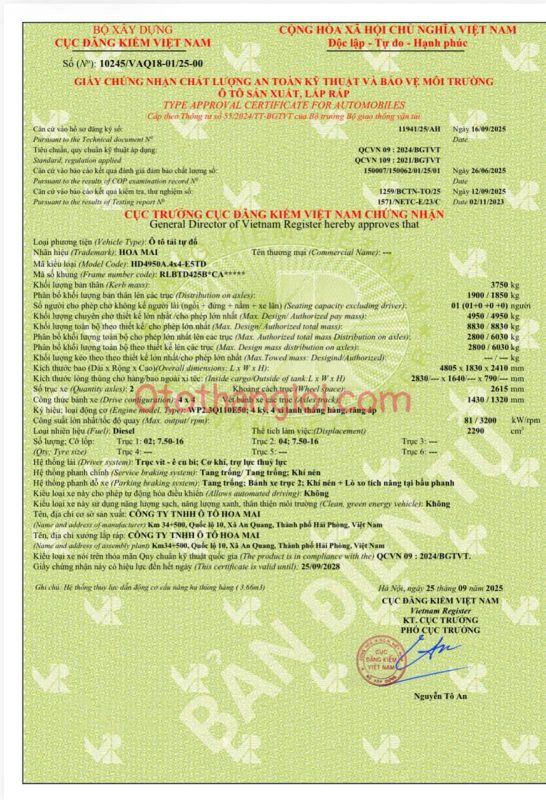- Tổng khối lượng tham gia giao thông : 8.830 kg