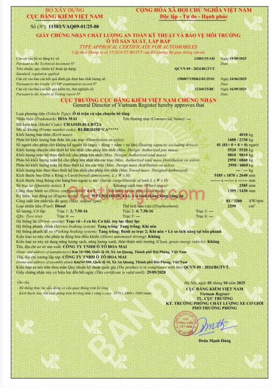 - Tổng khối lượng tham gia giao thông : 9.810 kg